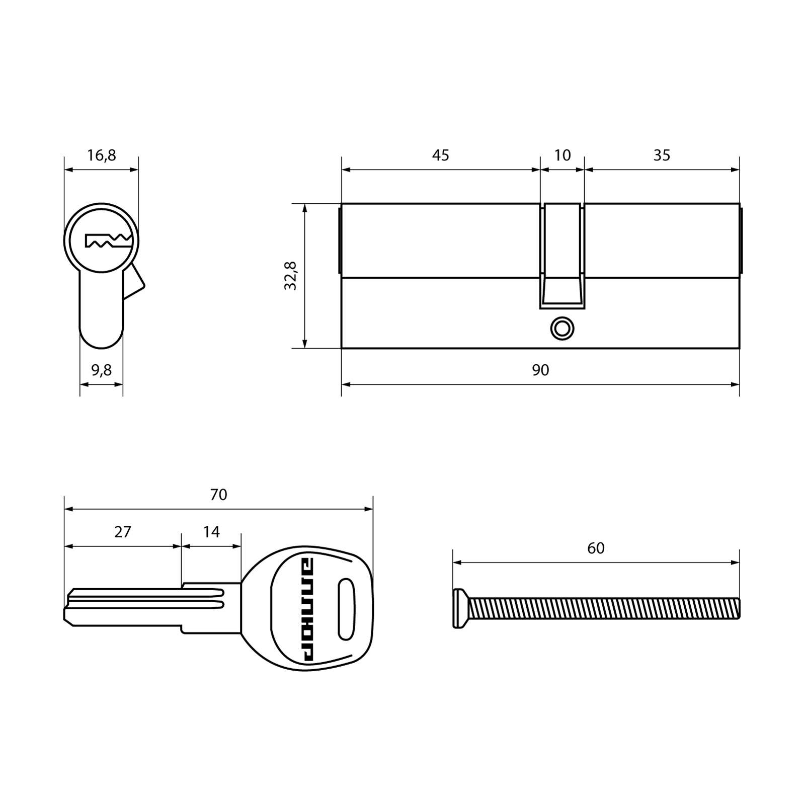 Типоразмер цилиндрового механизма 40/50 мм